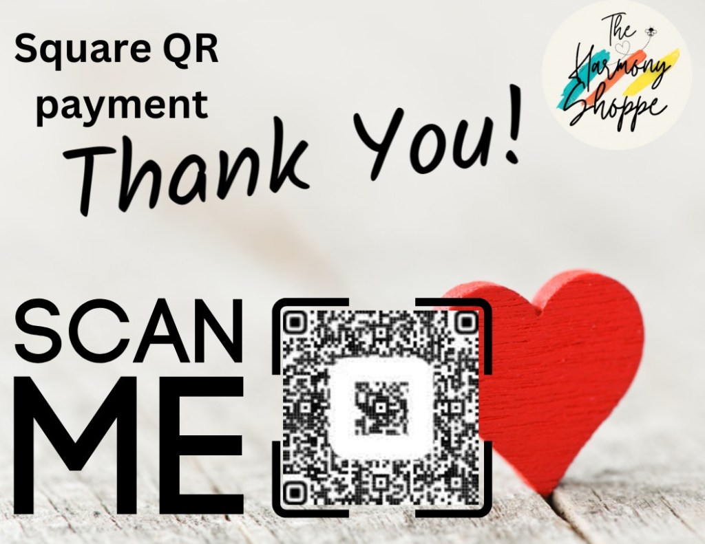 Payment: – Payments can be made using our secure square QR code or we can send you an invoice. If you are interested in an item, please email us at crystal@theharmonyshoppe.com